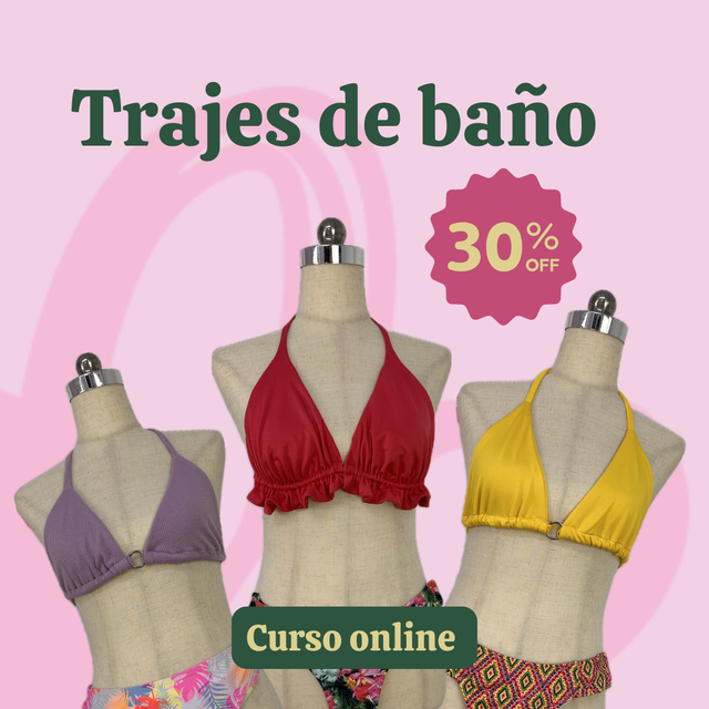 En este curso vas a aprender a crear: malla triangulo, malla con volados, bikini con tiritas, bombacha tiro alto, malla entera y trikini.